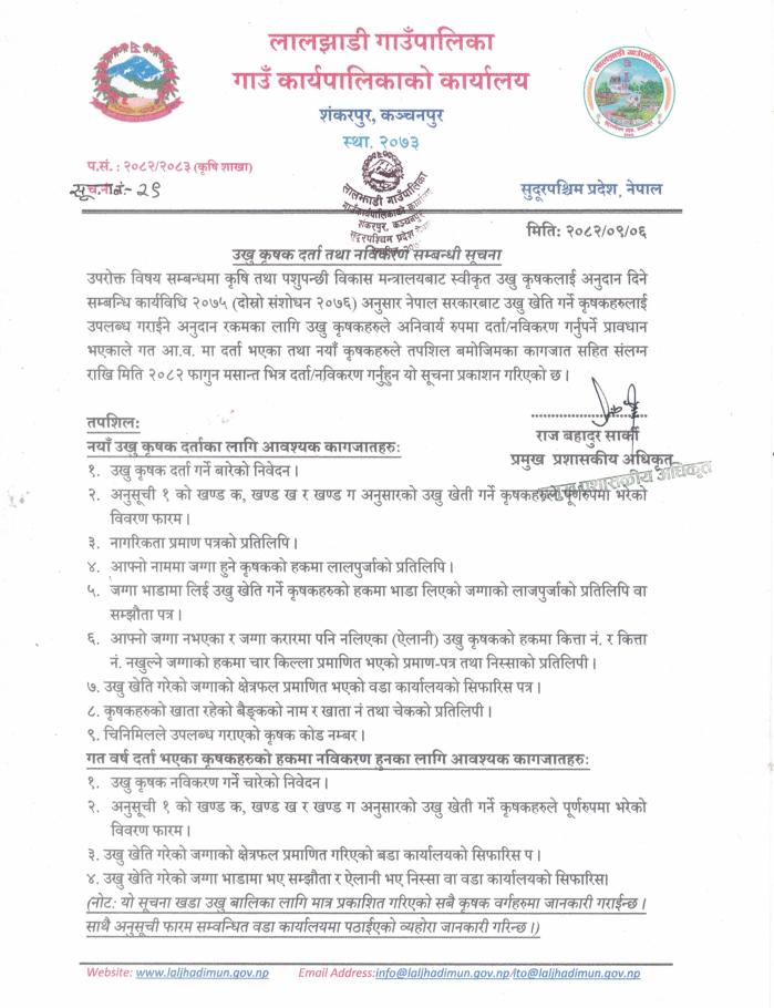 उखु कृषक दर्ता तथा नविकरण सम्बन्धमा ।