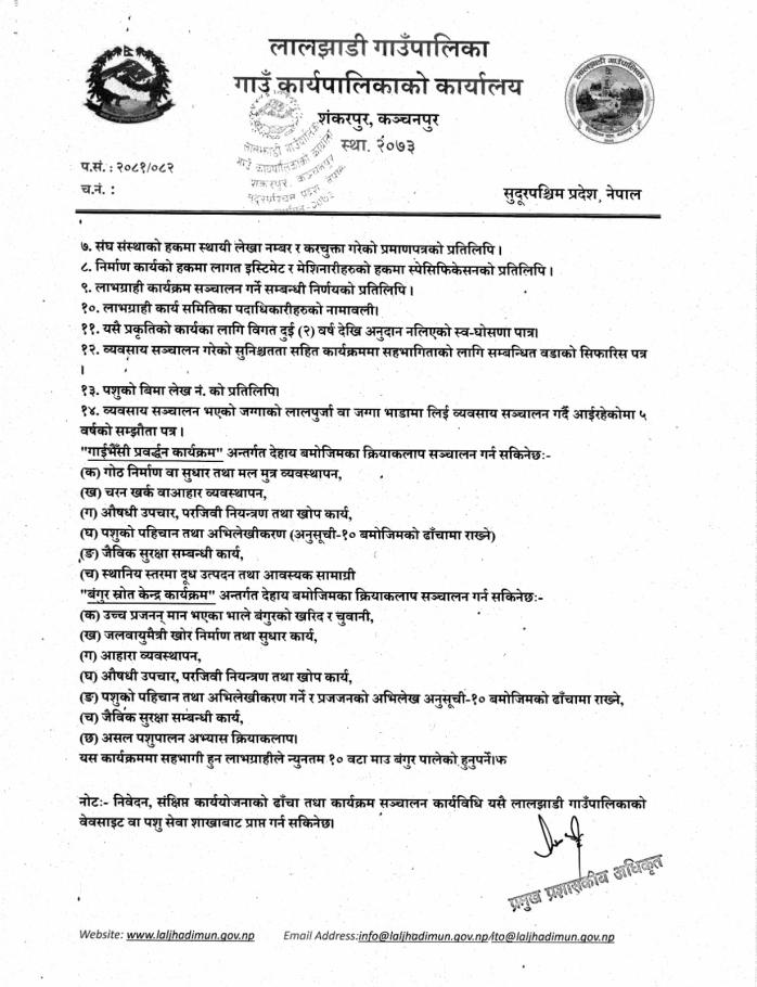 गाईभैसी प्रवर्द्धन र बंगुर श्रोत केन्द्र कार्यक्रम सम्बन्धी सूचना