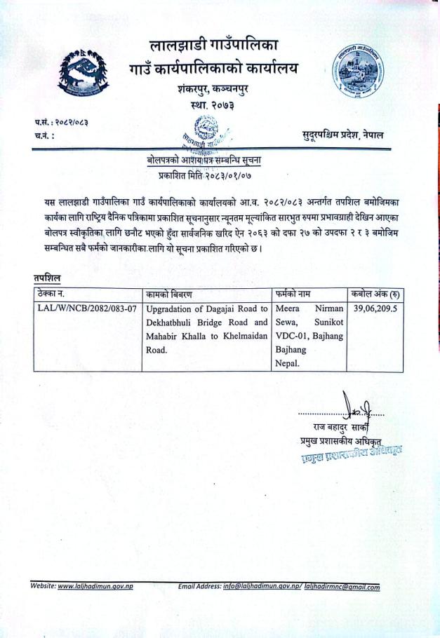 बोलपत्रको आशय पत्र सम्बन्धि सूचना ।