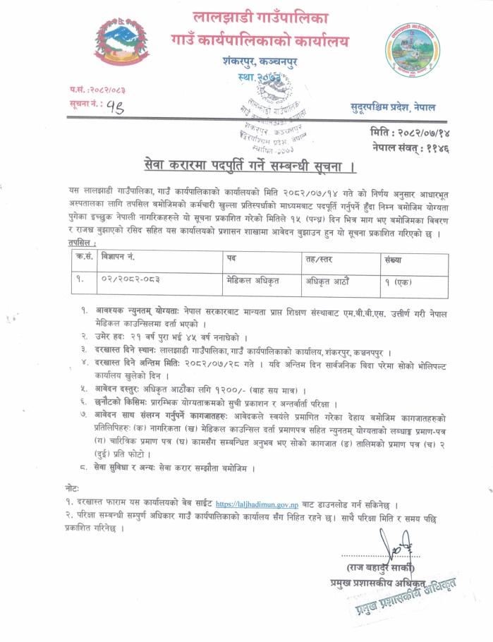 सेवा करारमा पदपुर्ति गर्ने सम्बन्धी सूचना ।
