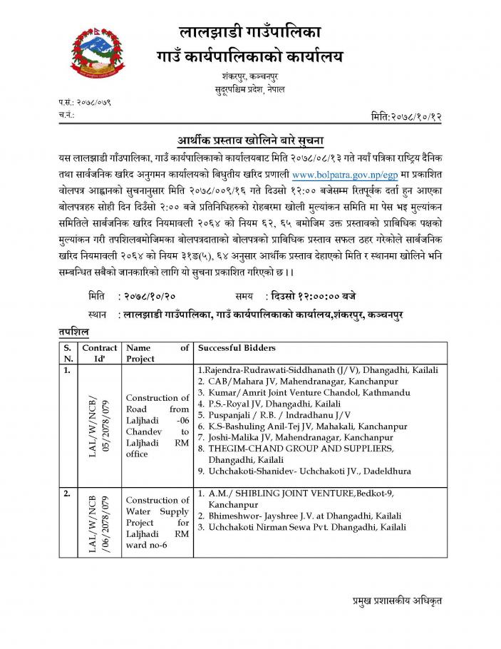 आर्थिक प्रस्ताव खोलिने सम्बन्धमा