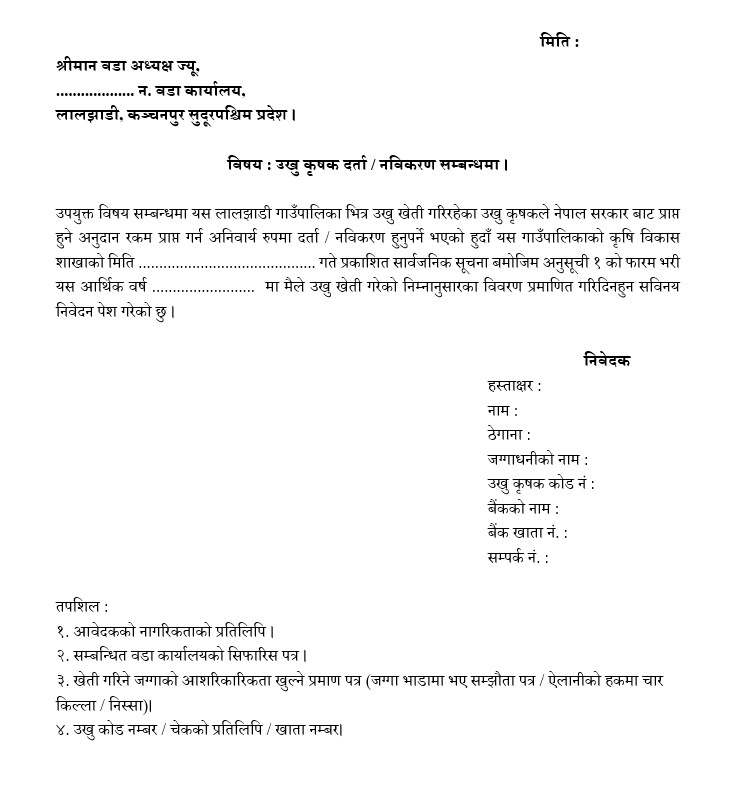 उखु कृषक दर्ता तथा नविकरण सम्बन्धी सूचना