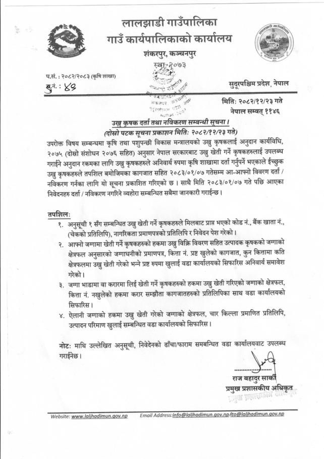 » उखु कृषक दर्ता तथा नविकरण सम्बन्धी सूचना