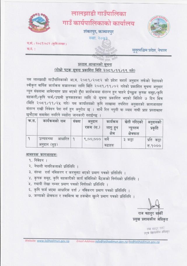 उत्पादनमा आधारित अनुदान (मुङ्ग) कार्यक्रम प्रस्ताव आव्हानको सूचना (पुन:)