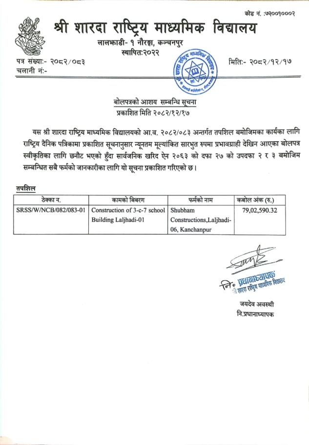 बोलपत्रको आशय पत्र सम्बन्धि सूचना ।
