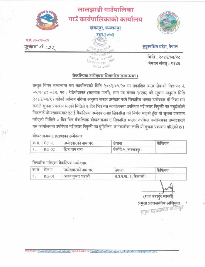 वैकल्पिक उम्मेदवार सिफारिस सम्बन्धमा ।