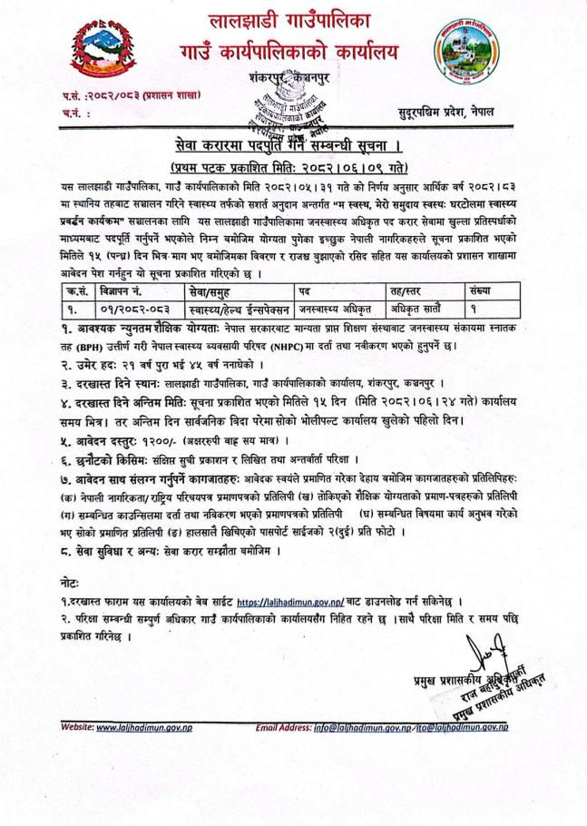 सेवा करारमा पदपुर्ति गर्ने सम्बन्धी सूचना ।