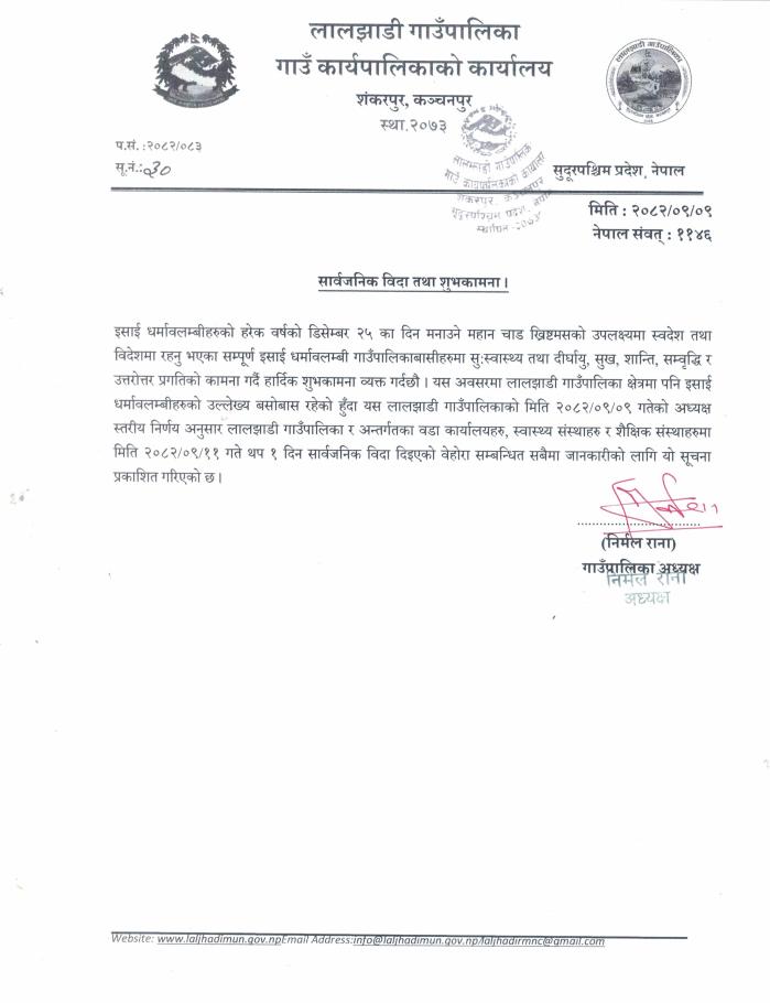 स्थानीय सार्वजनिक विदा सम्बन्धी सूचना ।