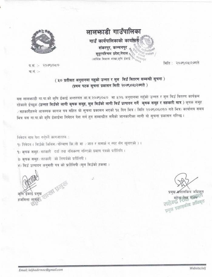 » ५० प्रतिशत अनुदानमा गहुँको उन्नत र मुल विउँ वितरण सम्बन्धी सूचना